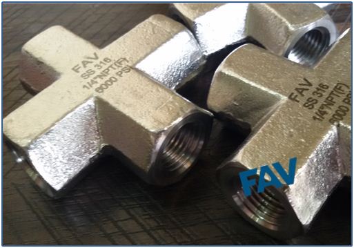 Standard Material for Female Cross,10000 psi is SS 316 but is also available in Carbon Steel, Brass, Hastelloy , Inconel alloys , Monel alloys , Titanium , Super Duplex & Duplex .