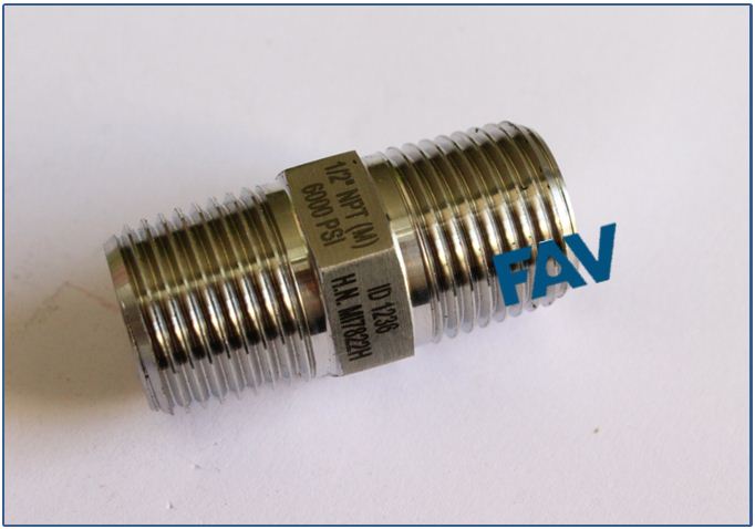 FAV is the manufacturer of High Pressure Hex Nipples 10000 psi , 700 Bars. It has NPT Male Connection on both sides .
