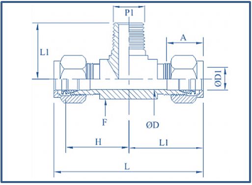 | PART No. | 0D1 Imperial | P1 NPTM | 0D | F Hex | A Inch | L1 Inch | L Inch | H mm |