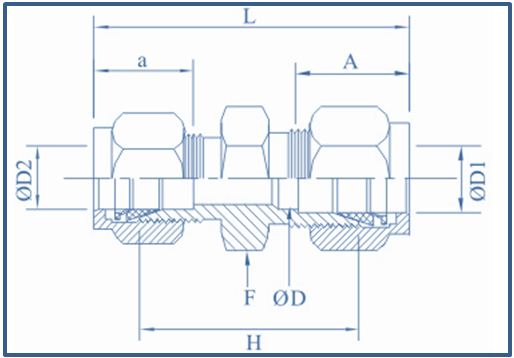 PART No. 0D1 Inch 0D2 Inch 0D Inch F Hex A Inch a Inch L Inch H mm