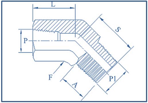 We make and stock 45° ELBOW STREET Male X Female in sizes 1/16 to 1 . Standards is NPT Threads .They are also available in BSP ,BSPT and Metric.